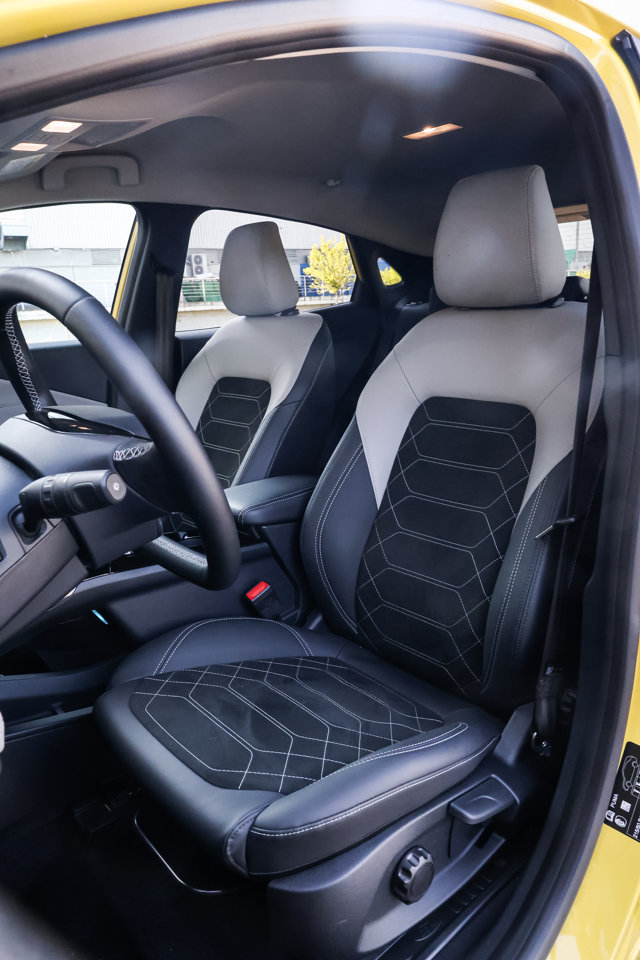 De ce aminteşte? De un kart. Sistemul one pedal funcţionează exact cum trebuie, suspensia filtrează bine denivelările, deşi maşina este cu aproape 180 kg mai grea în versiune electrică decât cea ICE.