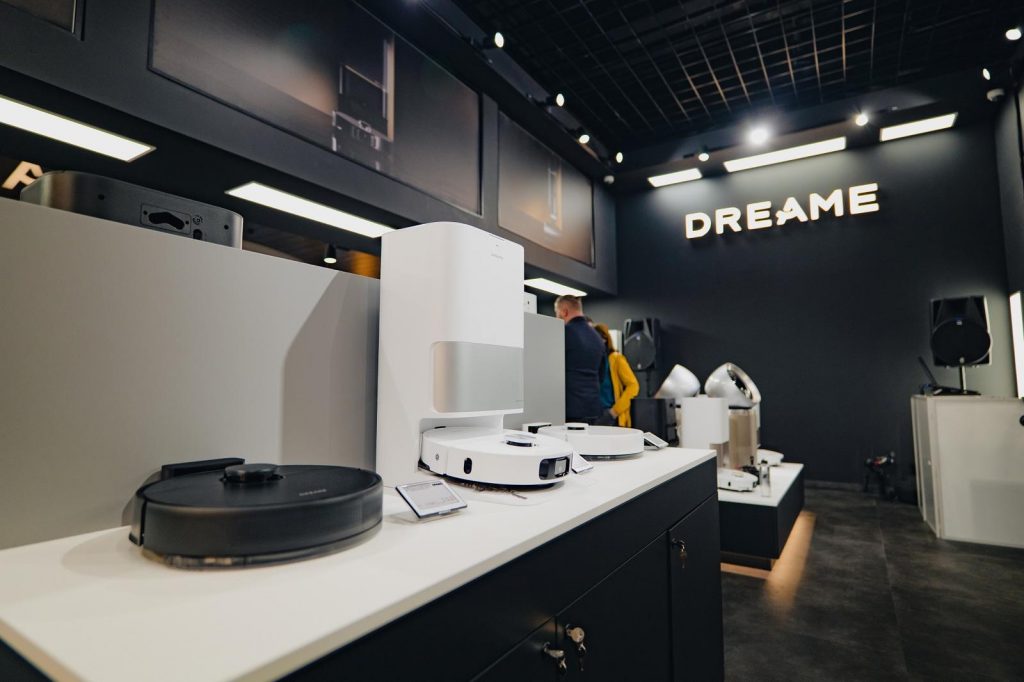 În showroom sunt expuse peste 35 de produse Dreame, inclusiv aspiratoare robot, sisteme de curățare umedă și uscată, aspiratoare verticale fără fir, purificatoare de aer, aparate de îngrijire personală și roboți de tuns iarba.