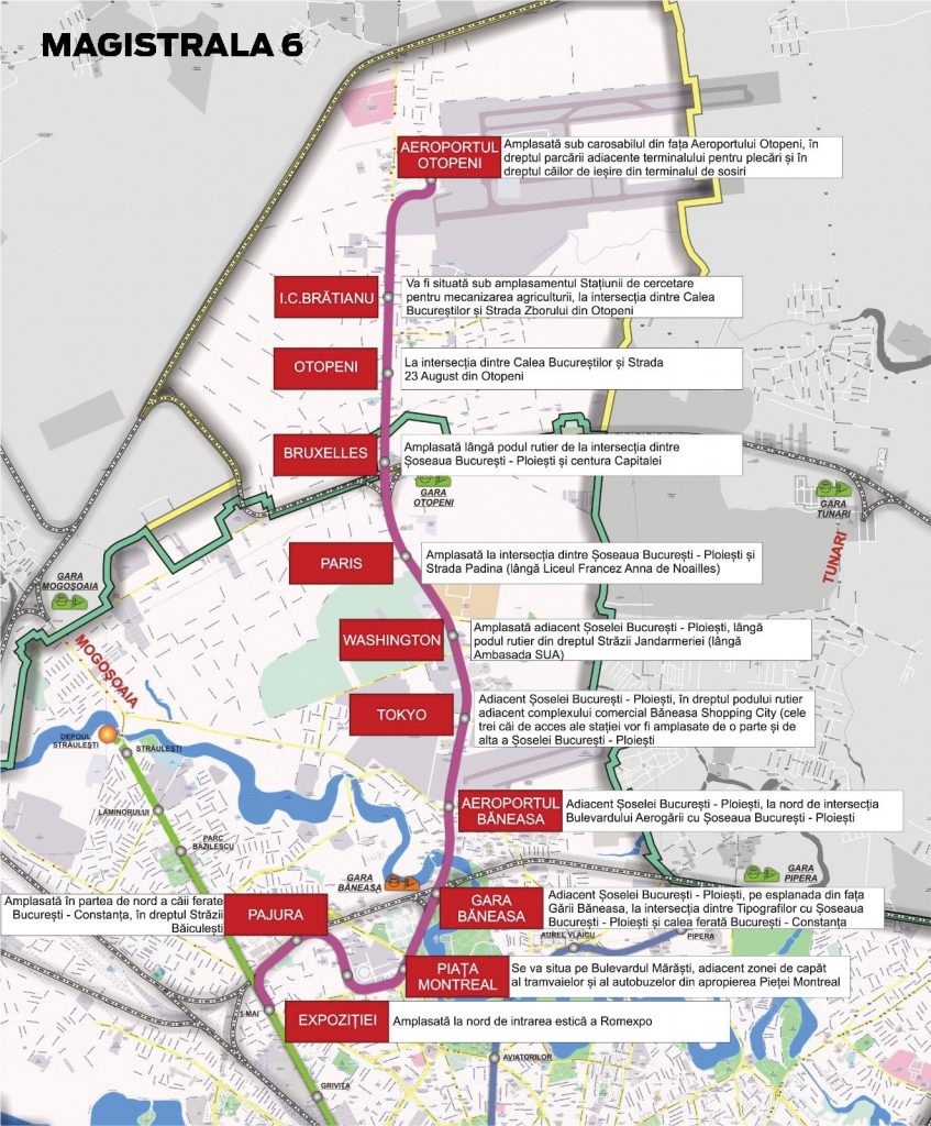 Linia deservește zona Expoziției și nordul Capitalei, unde pot lucra între 30.000 și 50.000 de angajați, potrivit datelor din piața de real-estate citate în material. Magistrala 6 are o capacitate maximă de transport de 50.000 călători/oră/sens și include 12 stații, de la 1 Mai până la Aeroport Otopeni.