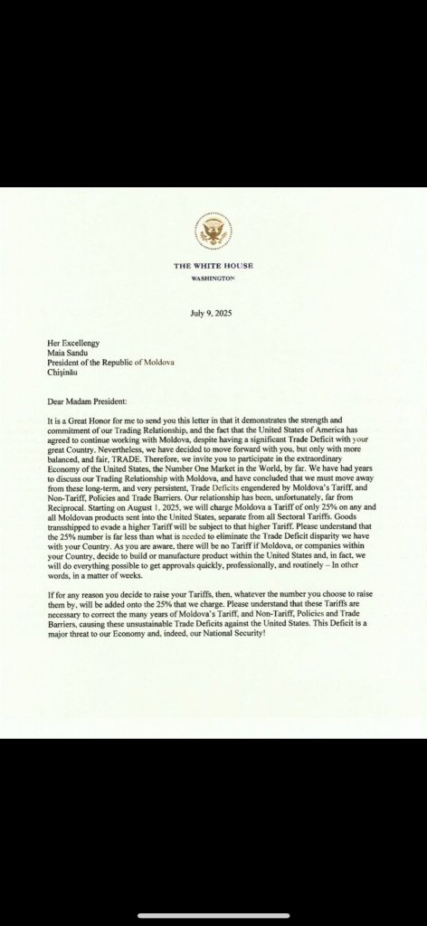 • Moldova și Filipine urmează să suporte un tarif de 25%.