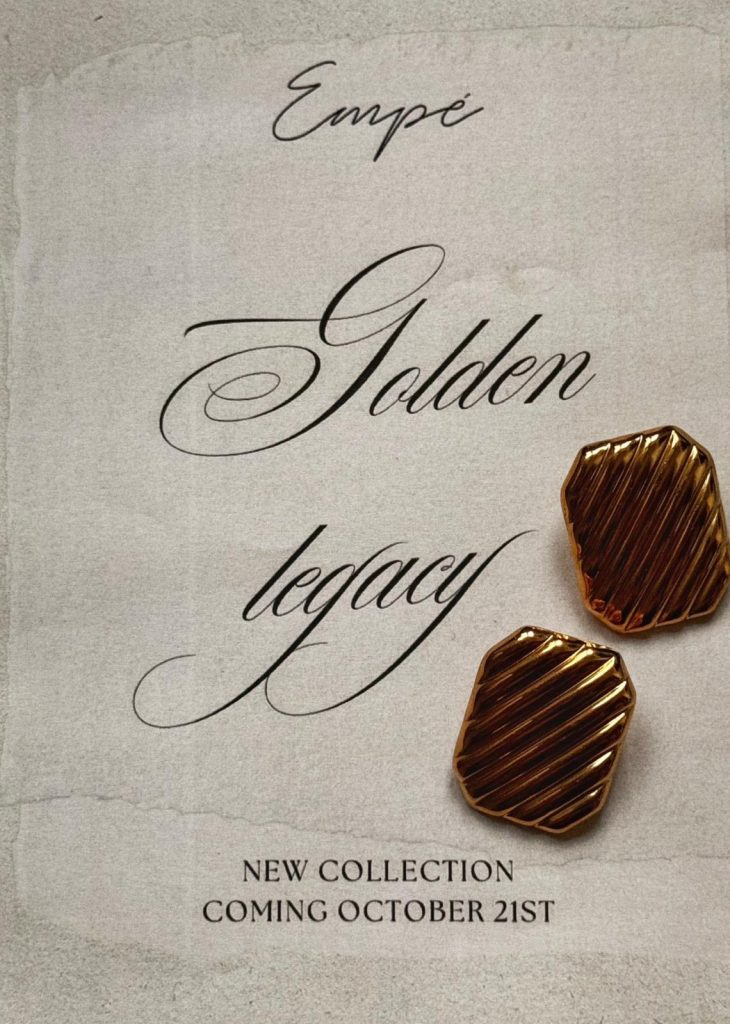 Empé Jewelry, brand românesc lansat în 2019, introduce colecția „Golden Legacy”, definită de forme ample și tonuri aurii. Linia păstrează estetica deceniilor ’80–’90 și pune accent pe design atemporal, execuție manuală și detalii cu pietre semiprețioase.