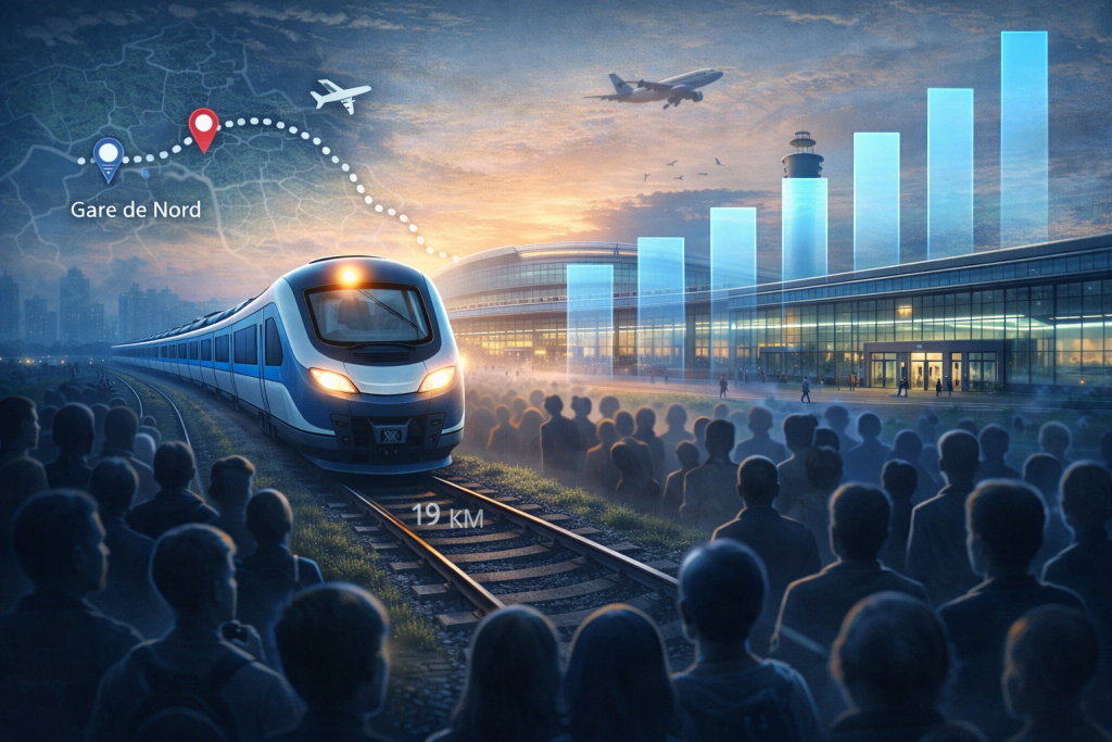 Traficul liniei se leagă direct de creșterea aeroportului, care ajunge la 17 mil. pasageri în 2025, după 15,9 mil. în 2024. Aeroportul are în plan un nou terminal, pentru un trafic estimat la 30 mil. pasageri în 2040. Legătura cu aeroportul se completează și cu Magistrala 6 de metrou, planificată pentru 2028–2029, cu o investiție actualizată de 9,3 mld. lei.