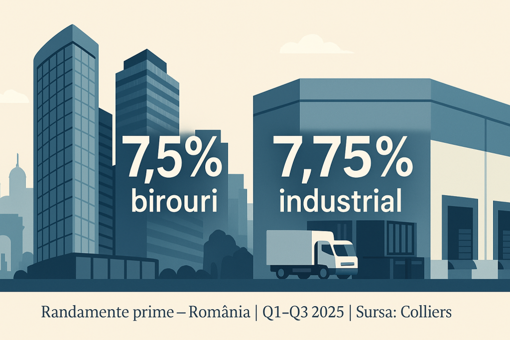 Randamentele prime urcă la 7,5% pentru birouri și 7,75% pentru industrial, peste nivelurile din Cehia și Polonia. Colliers notează că acest diferențial menține interesul investitorilor orientați spre plasamente solide și pe orizont mai lung.