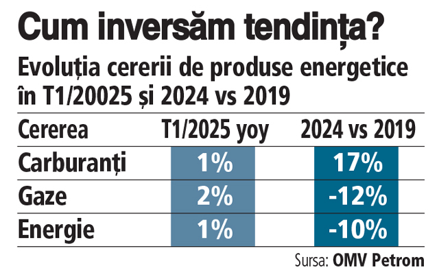 În contrast cu piaţa carburanţilor, cererea de energie electrică scade cu 10% între 2019 şi 2024, iar consumul de gaze naturale se reduce cu 12%. Această tendinţă descendentă apare într-un moment în care România pregăteşte lansarea unor mari proiecte energetice, precum Neptun Deep din Marea Neagră.
