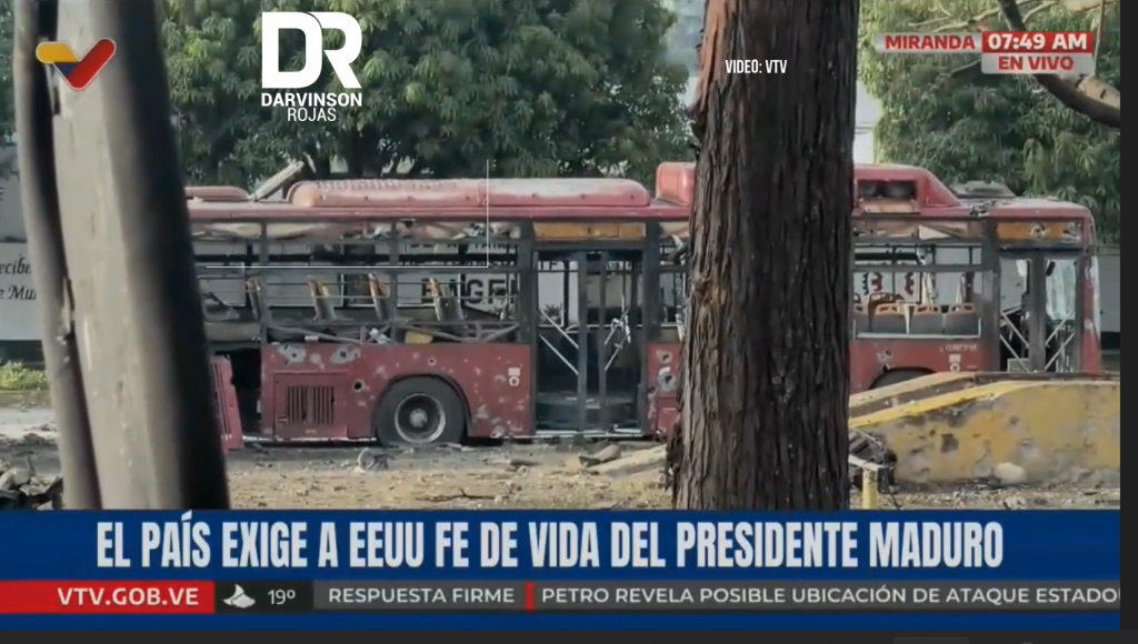 O bombă a lovit un vehicul la intersecția Charallave, lângă intrarea în Aeroportul Oscar Machado Zuloaga (municipiul Cristóbal Rojas, statul Miranda). Cel puțin două persoane au murit arse de vii după ce mașina, despre care se pare că este o Arauca albă, a fost complet cuprinsă de flăcări. Până în prezent, acesta este singurul incident raportat în regiunea Văii Tuy în mijlocul bombardamentelor aeriene efectuate de trupele americane în Miranda, Vargas, Aragua și Caracas, unde au atacat instalații militare.
