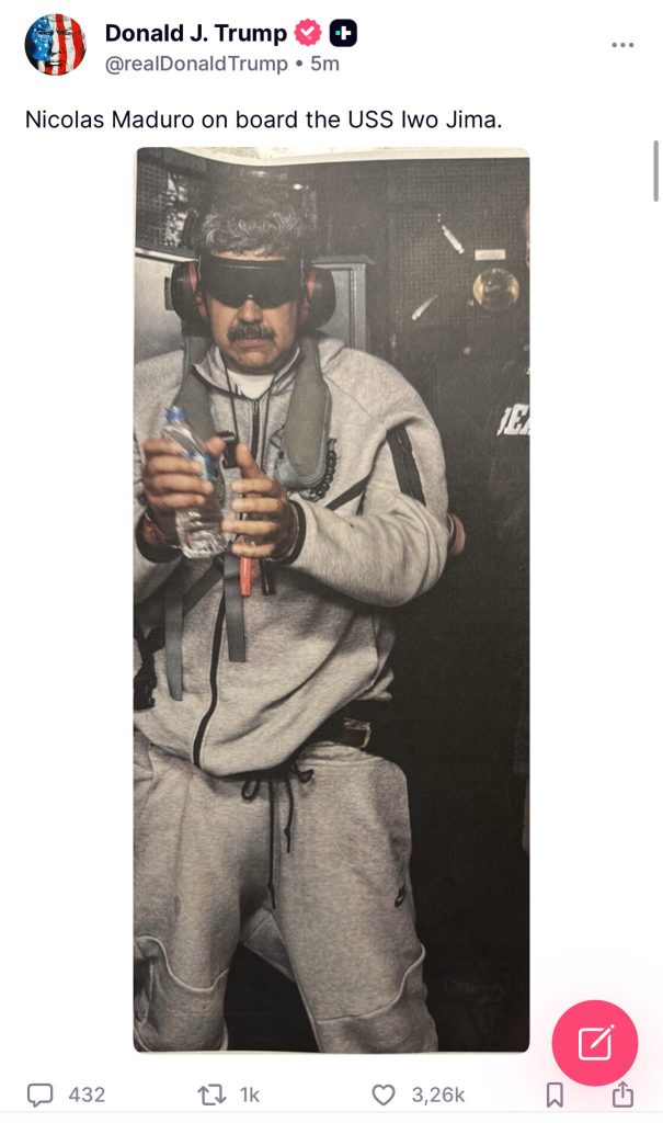 Trump publică prima imagine cu Maduro capturat