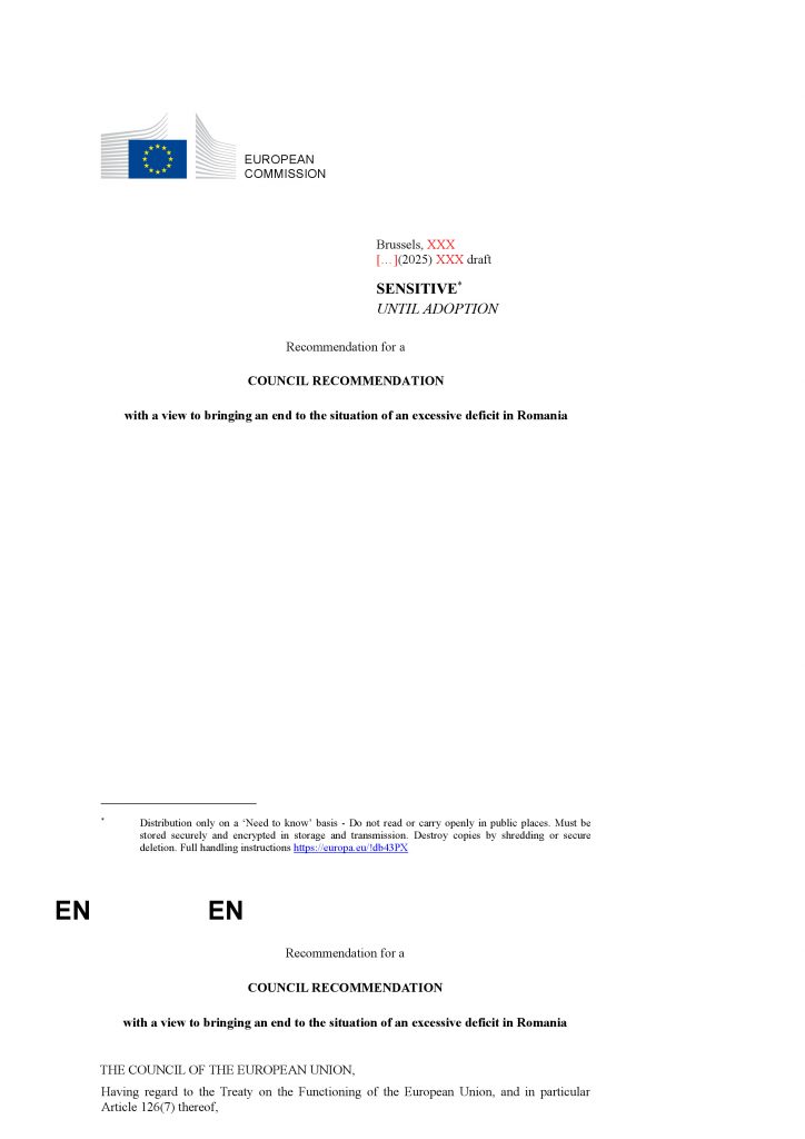 Draftul noii Recomandări va fi publicat luni și va fi, în principiu, discutat în 30 iunie și supus aprobării la ECOFIN în 8 iulie.