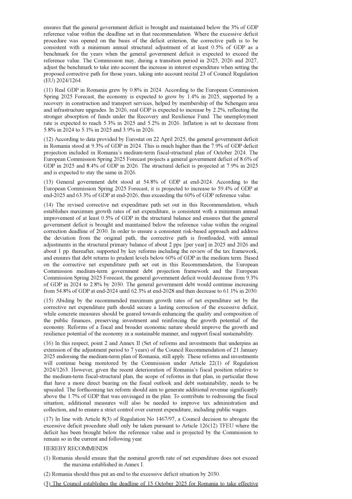 - Guvernului de la Bucureşti are timp până în 15 octombrie să vină cu planul de măsuri fiscale care să corecteze derapajul bugetar.