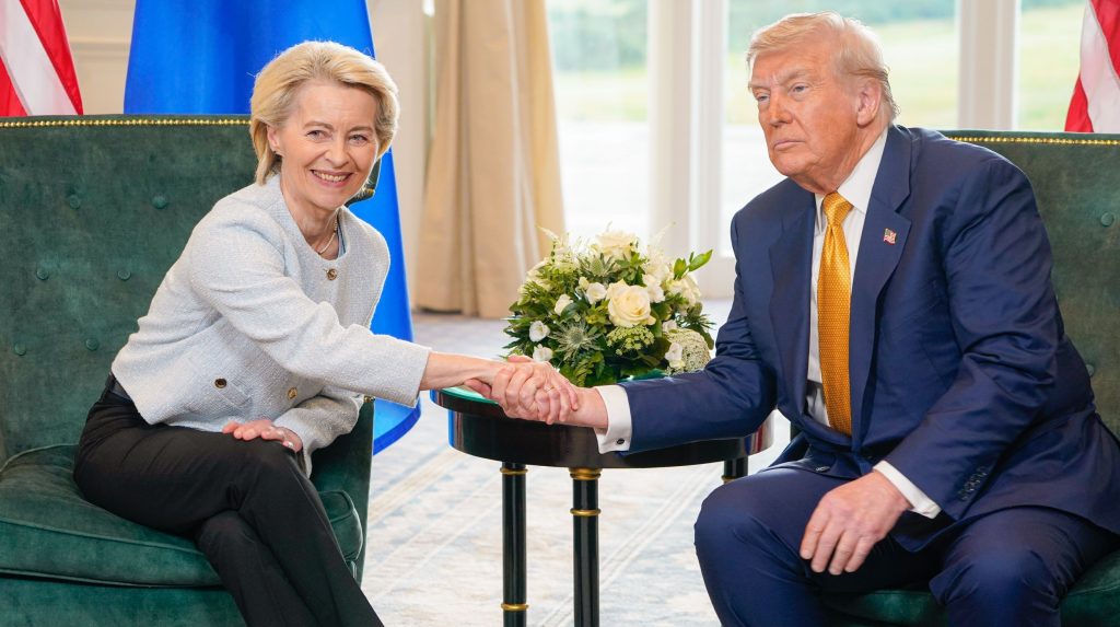 Statele Unite încheie duminică un acord-cadru comercial cu Uniunea Europeană, care impune un tarif vamal de 15% asupra majorităţii bunurilor provenite din UE. Acest acord evită un război comercial amplu între cele două blocuri aliate, care împreună reprezintă aproape o treime din comerţul global, scrie FT.