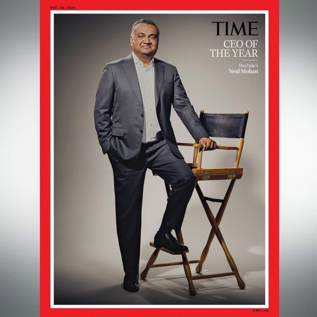 Time îl desemnează pe Neal Mohan „CEO of the Year 2025”, pe fondul expansiunii YouTube din telefon în sufragerie și al creșterii accelerate a veniturilor. YouTube spune că peste 2 miliarde de oameni vizitează platforma în fiecare zi, iar aproximativ jumătate din vizionări au loc pe ecrane de televizor.