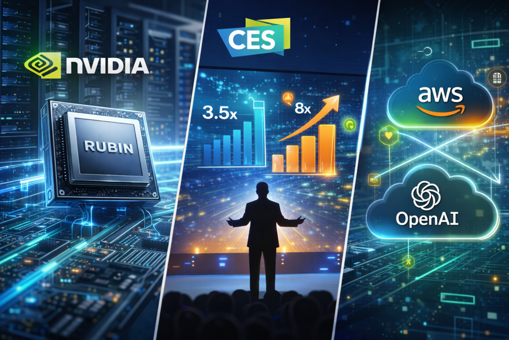 Nvidia lansează arhitectura de calcul Rubin la CES și spune că noua generație de cipuri AI este deja în producție completă. Rubin înlocuiește Blackwell, iar Nvidia estimează că volumele cresc semnificativ în a doua jumătate a anului curent. Jensen Huang spune că investițiile globale în infrastructura AI ajung la 3–4 trilioane de dolari în următorii cinci ani.